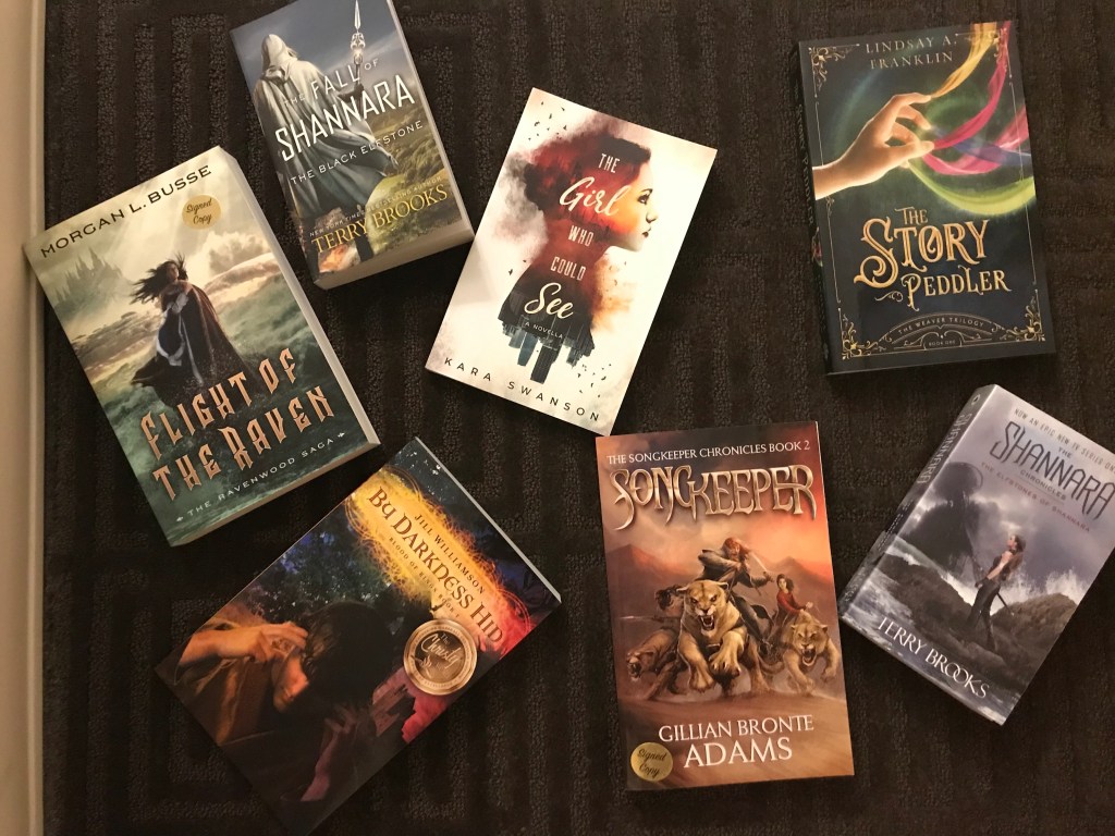 After supper, I had new-attendee orientation, which gave a quick overview of Realm Makers and how everything worked. I got my second free book there! I got my first free book when I signed in at the registration table. Everyone who came to Realm Makers got a free book by Terry Brooks, the guest of honor for the conference. I got my second free book (also by Terry Brooks) because Realm Makers was my first writing conference ever.