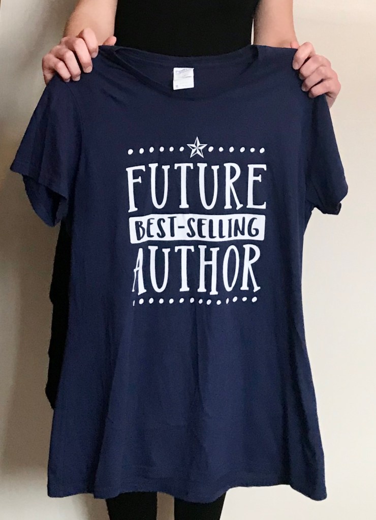 Wear a shirt that proclaims your writing dreams! It also really boosts your confidence in your writing when you wear it (trust me).