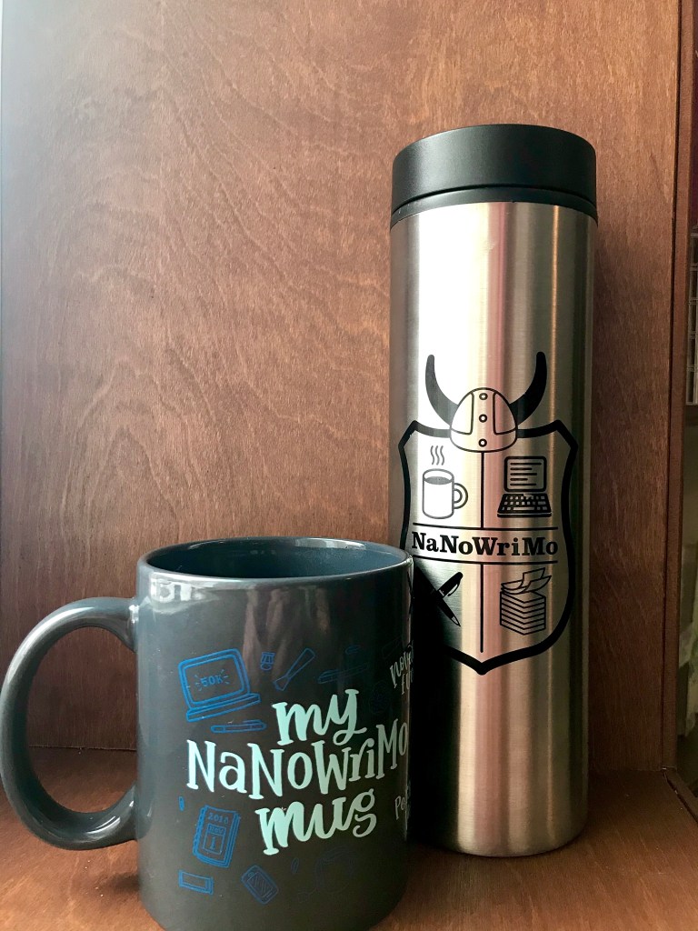 If you’ve participated in NaNoWriMo, then why not ask for some NaNoWriMo swag? There are various cups and mugs (as shown here), and T-shirts. If you’ve won NaNoWriMo, get a winner T-shirt to show off your win!